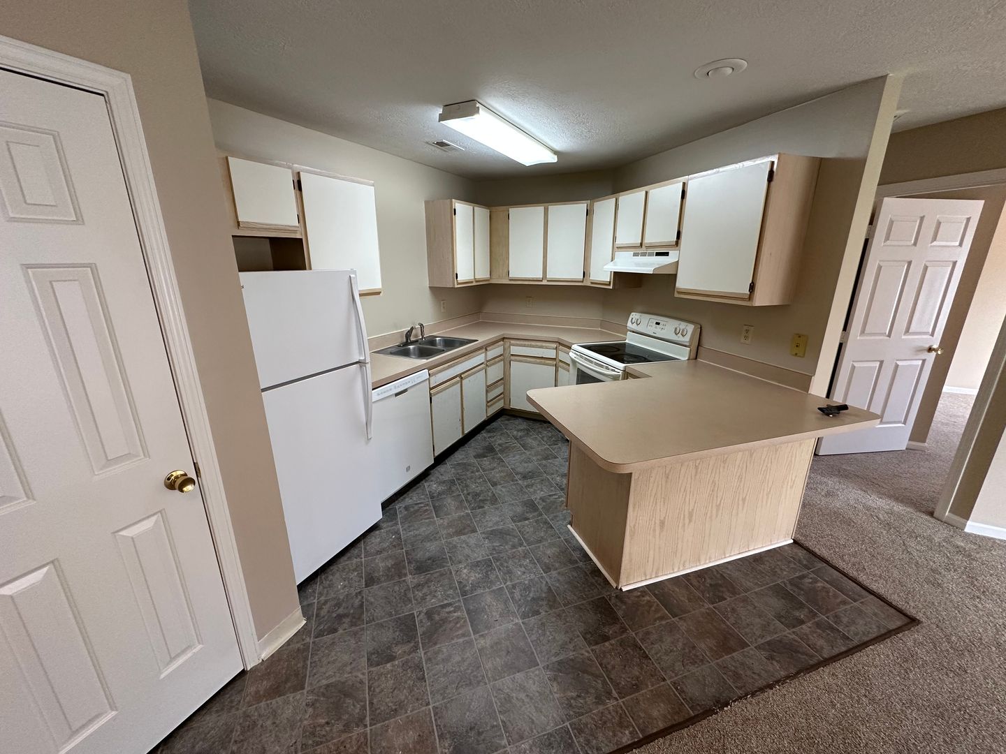 Cedar Brook in Norwalk, Ohio offers spacious two-bedroom, two-bath apartments designed for comfortable, everyday living. Unit 12A features a full kitchen with a refrigerator, stove, and dishwasher, along with washer and dryer hookups for added convenience.